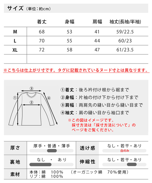 | (本体)綿100%(オーガニック綿70%使用) (リブ)綿100% |
