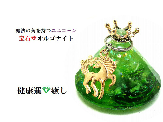 健康運・癒し・誠実★グリーン★水晶★オルゴナイト★宝石オルゴナイト★ユニコーン★ダイヤ★王冠★風水★パワーストーン