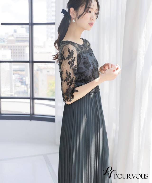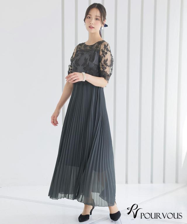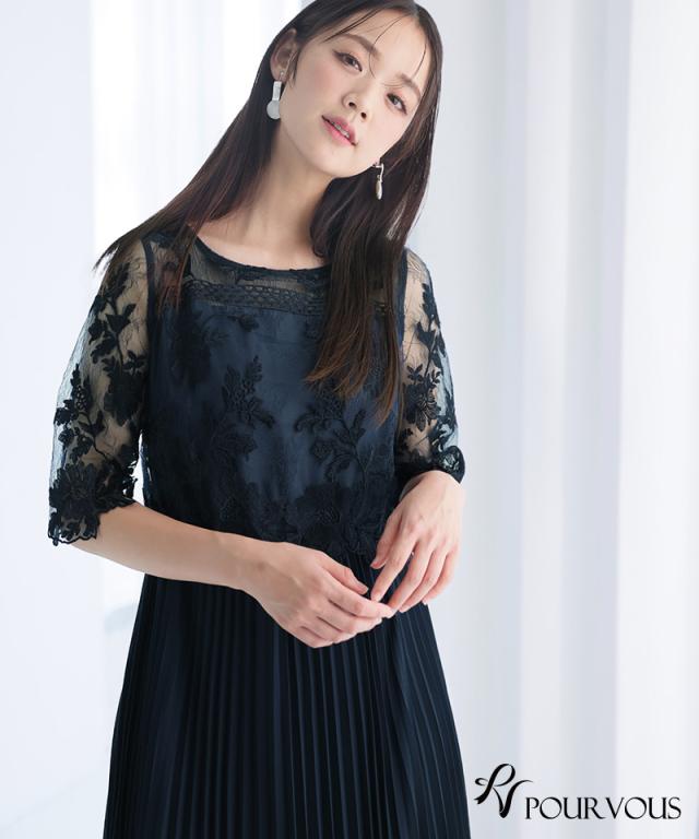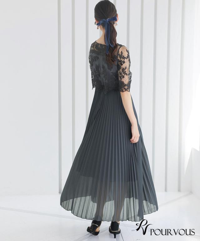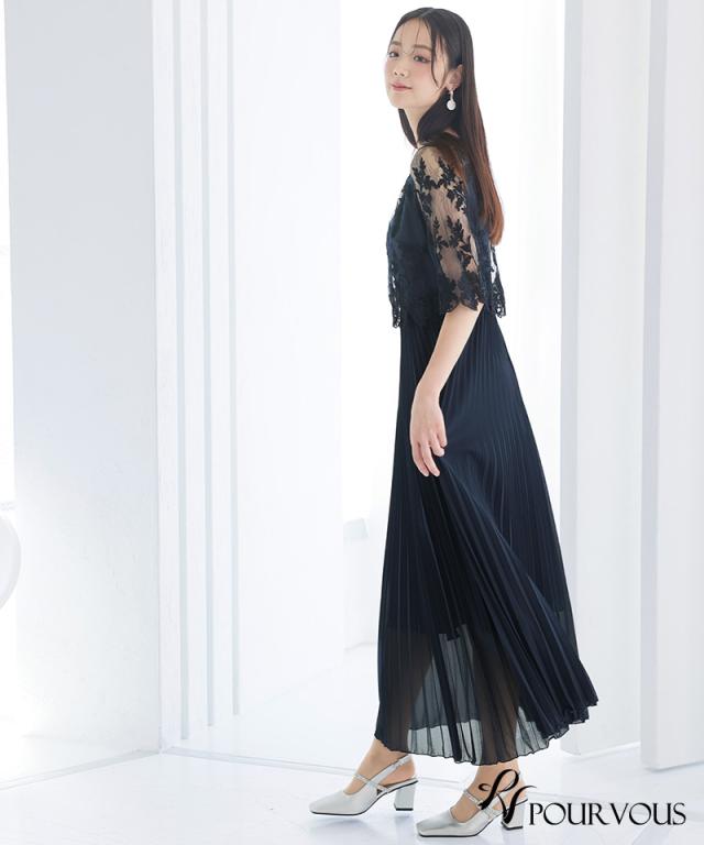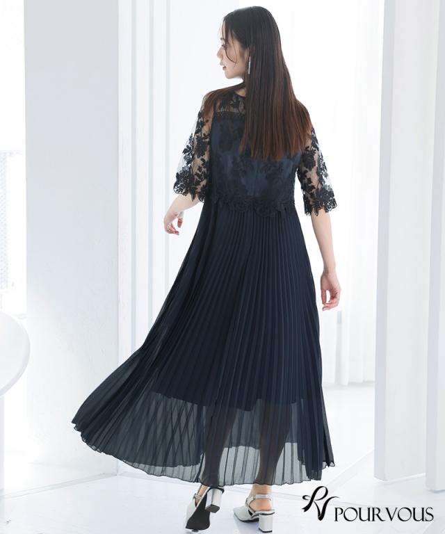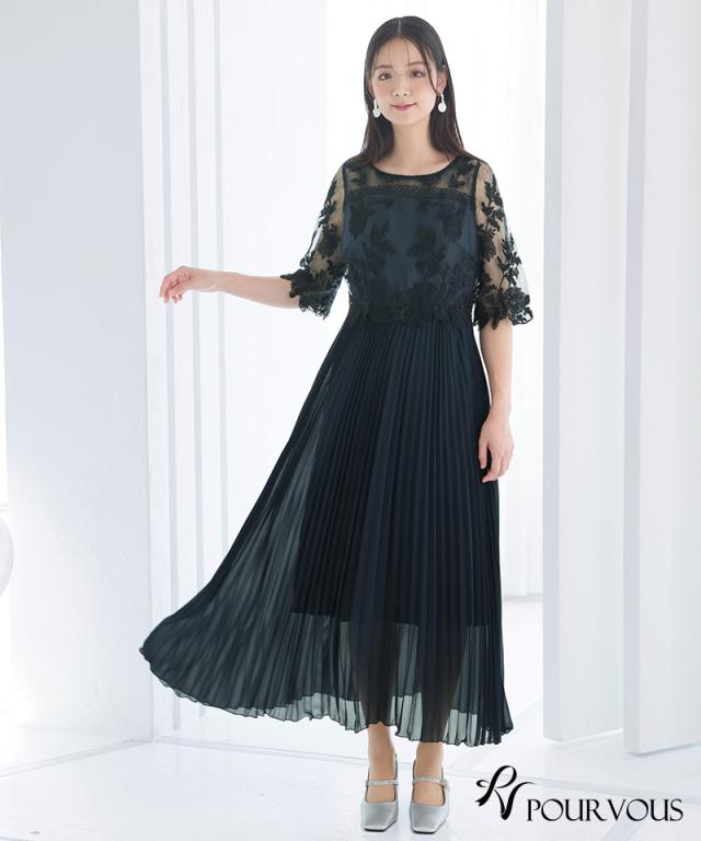 刺繍レース&プリーツドレス【3625】10代・20代・30代・40代・50代ドレスワンピ・フォーマルワンピ・服装・ワンピース・ドレスカジュアル・ブランド・七分袖・半袖・ロング・膝丈・薄手・厚手・無地・刺繍・脚長効果・伸縮性・キレイめ・着やせ・体型カバー・スタイルアップ・レース・リボン・ドレープ・小さいサイズ・3Lや4L・かっこいい、かわいい・即日発送・送料無料・結婚式・婚活・披露宴・顔合わせ・発表会・演奏会・二次会・同窓会・お呼ばれ・食事会・謝恩会・親族・七五三・お宮参り・冠婚葬祭・弔事・女子会・韓国・デート・入学式・卒業式・入園式・卒園式・ママ・ピアノ・マタニティー・セレモニー・セレブ・パーティー