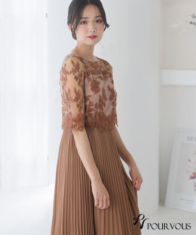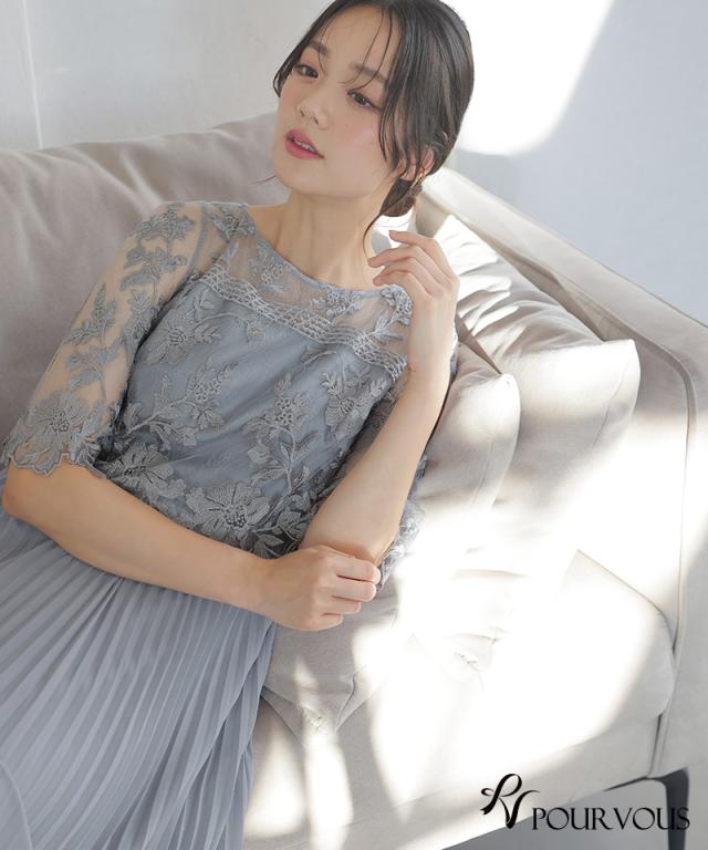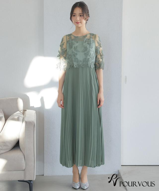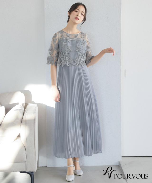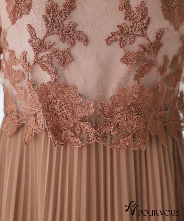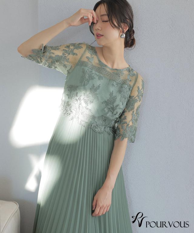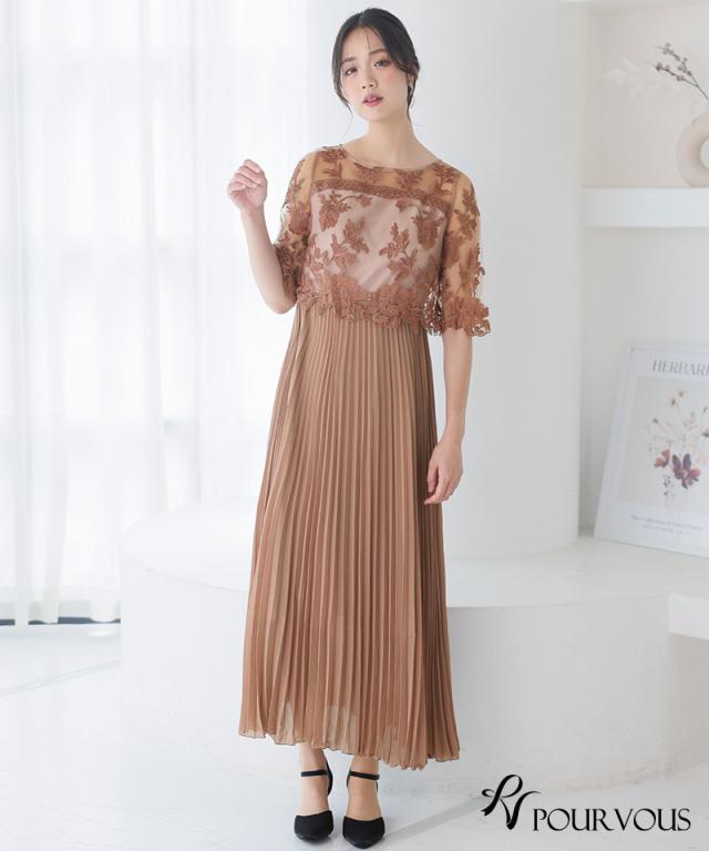 刺繍レース&プリーツドレス【3625】10代・20代・30代・40代・50代ドレスワンピ・フォーマルワンピ・服装・ワンピース・ドレスカジュアル・ブランド・七分袖・半袖・ロング・膝丈・薄手・厚手・無地・刺繍・脚長効果・伸縮性・キレイめ・着やせ・体型カバー・スタイルアップ・レース・リボン・ドレープ・小さいサイズ・3Lや4L・かっこいい、かわいい・即日発送・送料無料・結婚式・婚活・披露宴・顔合わせ・発表会・演奏会・二次会・同窓会・お呼ばれ・食事会・謝恩会・親族・七五三・お宮参り・冠婚葬祭・弔事・女子会・韓国・デート・入学式・卒業式・入園式・卒園式・ママ・ピアノ・マタニティー・セレモニー・セレブ・パーティー