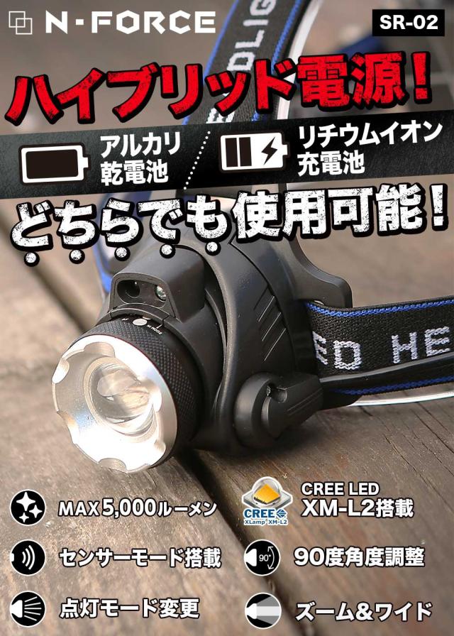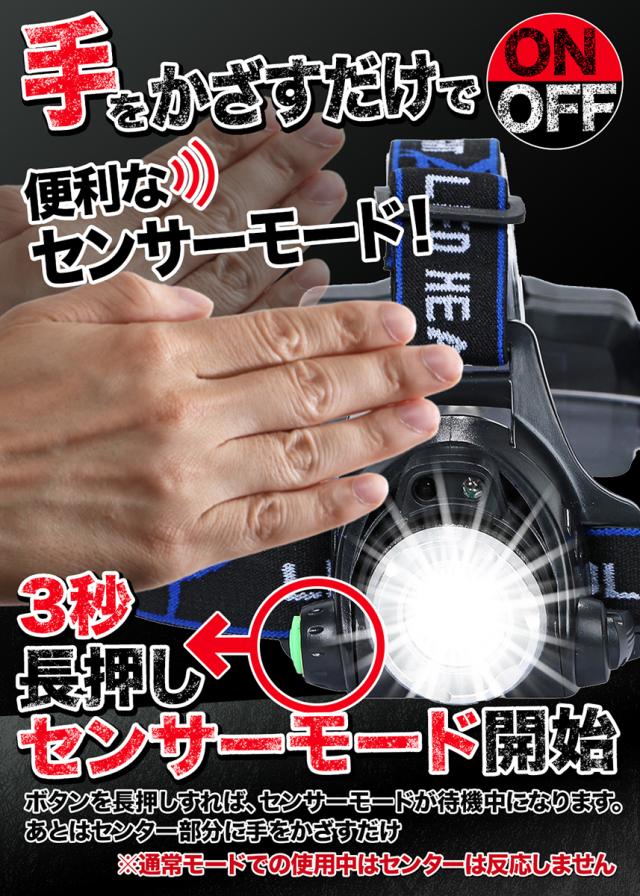 ヘッドライト 乾電池式 充電式 ハイブリット キャンプ キャンプ用 アウトドア 超強力 LED ヘッドランプ 釣り 登山 1000ルーメン キャンプ 登山 センサー SR-02