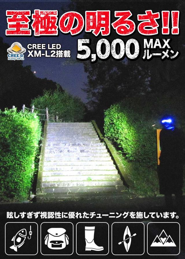 | 特徴 | cree ledライト、cree 社製LED XM-L2、生活防水 仕様 |