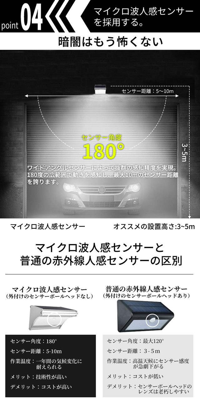 「クーポン配布中」「即納」防犯ライト 高輝度 ソーラーライト 屋外 選べる3サイズ センサーライト マイクロ波人感センサー 4つモード 超明るい 防犯対策 玄関ライト ガーデンライト 芝生 車道 庭 照明ライト 防水IP65 日本語取扱書付き 18ヶ月長期保証特典中