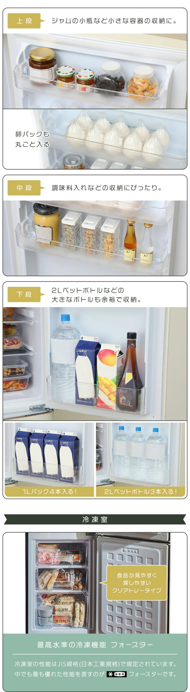 - 子供の一人暮らし用に購入しました。 ダンボールを開けると扉の角に1ヶ所、冷蔵庫左側面に3ヶ所もかなりおっきな陥没がありました。 出荷前に確認とかしないのかととても残念に思いました、 交換してもらうにも手間と時間もかかり新生活に間に合わないと交換を断念… 見える部分なのでホントに残念でした。