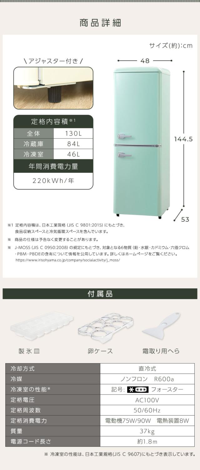130L(冷蔵室:84L/冷凍室:46L)