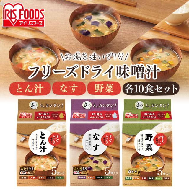 味噌汁 10食セット すぐおいしい 味噌 汁 みそしる ミソシル すぐおいしい フリーズドライ お味噌汁 おみそしる みそ汁 トン汁 豚汁 ぶたじる 茄子 なす ナス 野菜 やさい ヤサイ アイリスオーヤマ