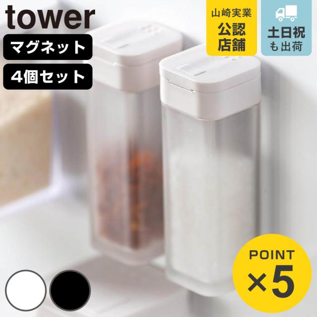 tower 山崎実業 マグネットスパイスボトル タワー 4個セット ( 4903208048132 タワーシリーズ スパイスボトル 調味料ボトル セット 調味料ケース 調味料ストッカー tower 山崎実業 マグネット 山崎実業 tower キッチン)