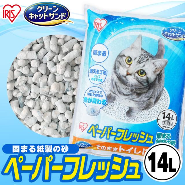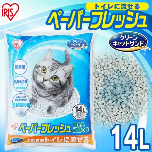 【単品】猫砂 紙 猫 ペーパーフレッシュ 14L PFC-14L アイリスオーヤマ 溶ける 固まる トイレに流せる 流せる 大容量 紙砂 ネコ砂 猫グッズ ペット用品 ペット ねこ砂 かみ パルプ 猫用トイレ 再生パルプ ネコ ねこ