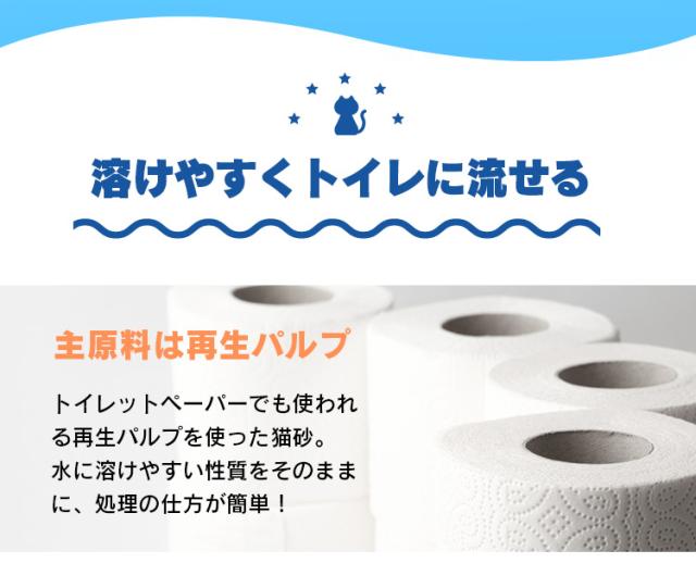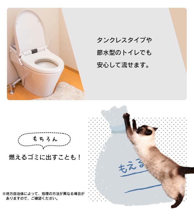 溶けやすくそのままトイレに流せる猫砂です。