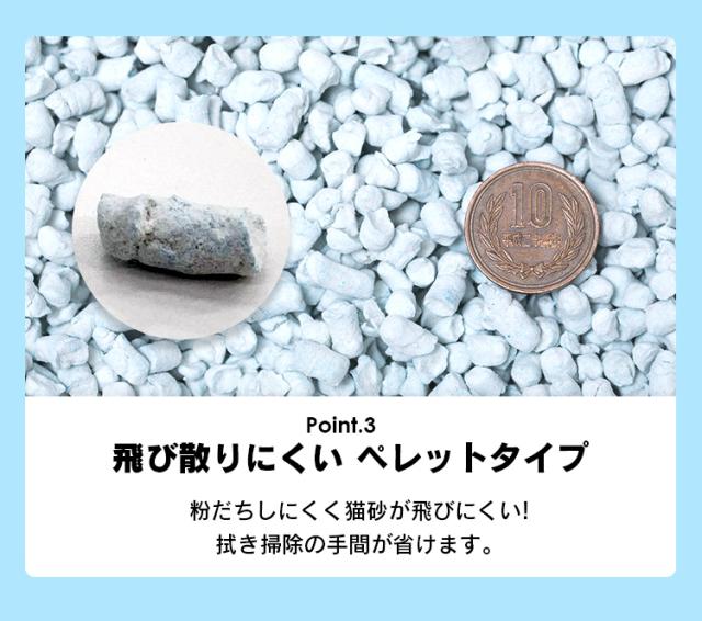 粉だちしにくく猫砂がとびにくい、大きめなペレットタイプ