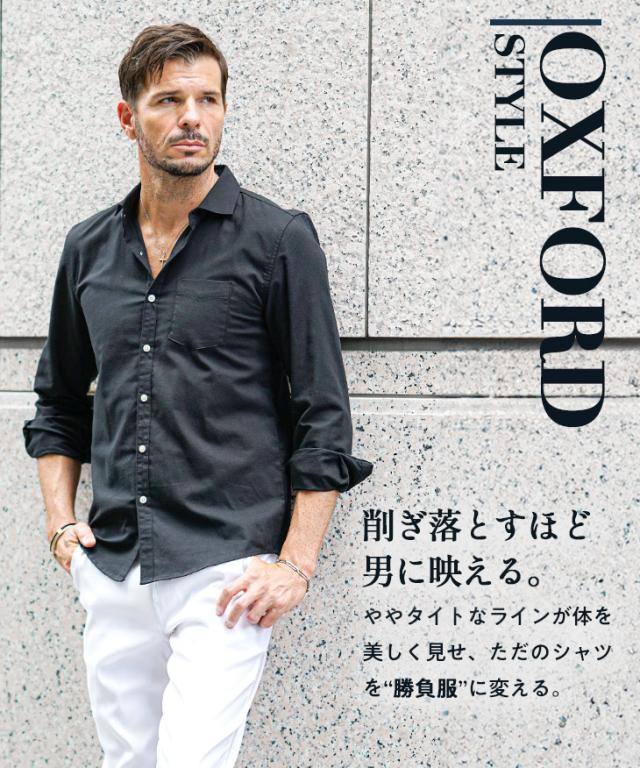 【ストレッチオックスシャツ】ベーシックな一着で男の美学を演出。カジュアルに着こなせるデザイン・カラーにより軽やかなデキる男が完成。攻めた襟・首元が色気と大人の余裕を魅せる。もちろんjokerお得意の絶妙な美シルエットでリッチが際立つ。※ホワイトは、インナーが濃色の場合やや透け感があります。