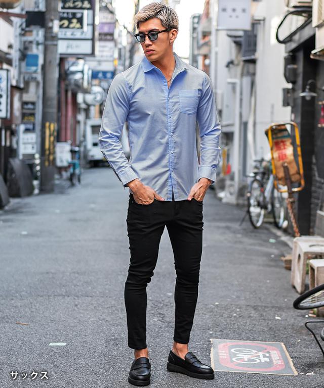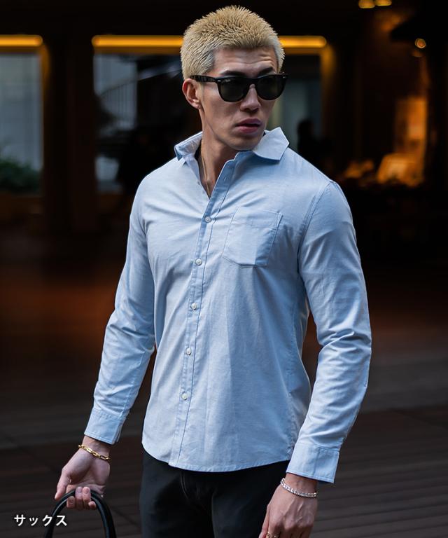 シャツ メンズ 長袖 シャツ メンズ 長袖 カジュアル 長袖シャツ メンズ オックスフォードシャツ カジュアルシャツ ホリゾンタルカラー ワイシャツ 白シャツ Yシャツ 無地 タイト スリム 細身 お兄系 オラオラ系 ちょいワル 夏服 夏 夏新作 新作