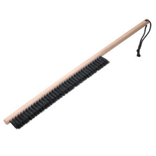 熟練職人が丹念に仕上げた天然毛の布団払い専用ブラシ。人間は寝ている間にコップ1〜1.5杯の汗をかくと言われ、定期的に布団の天日干しをすることが大切です。天日干しをした布団をしまう時に、昔は布団をたたきましたが、今はあまり効果がないと言われています。布団をたたきすぎても中身の綿が飛び出したり、布団を傷めるだけです。本品は、布団の表面を軽くたたきホコリを浮かして、ブラッシングするだけで隅々までお手入れができ、枕のホコリ落しにもご使用いただけます。ブラシ部分は長毛と短毛を段違いに組み合わせた専用形状になってます。全長60センチと長いため、布団の表面だけでなくカーテンなど、大きい(広い)生地製品にもお使いください。