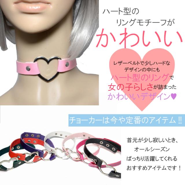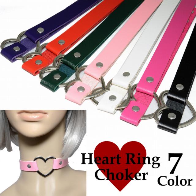 【メール便対応】ハート リング チョーカー -03 合皮 フェイクレザー 7カラー ROCK パンク PUNK かわいい かっこいい 激安【V系 ファッション ヴィジュアル系 ヘビメタ レディース 革 ユニセックス ゴスロリ】┃