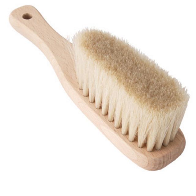 熟練職人が丹念に仕上げた白馬毛の衣類専用ブラシ。白馬尾毛を使い、すきまが無いほど密集させて植毛した、日本の職人技ならではのブラシです。3.5cmに長く切り揃えられた白馬尾毛は、長さがあるため、少ないブラッシング回数でもきちんとしなって繊維の奥の細かいホコリや汚れを払い落とします。そして、カシミヤの柔らかな風合いと艶を蘇らせます。もちろんカシミヤ以外のニット製品やスーツ等、他の衣類にも使えるブラシになってます。またこのブラシは、使い込めば使い込むほど、毛先が滑らかになり、ブラッシングがスムーズになってきます。