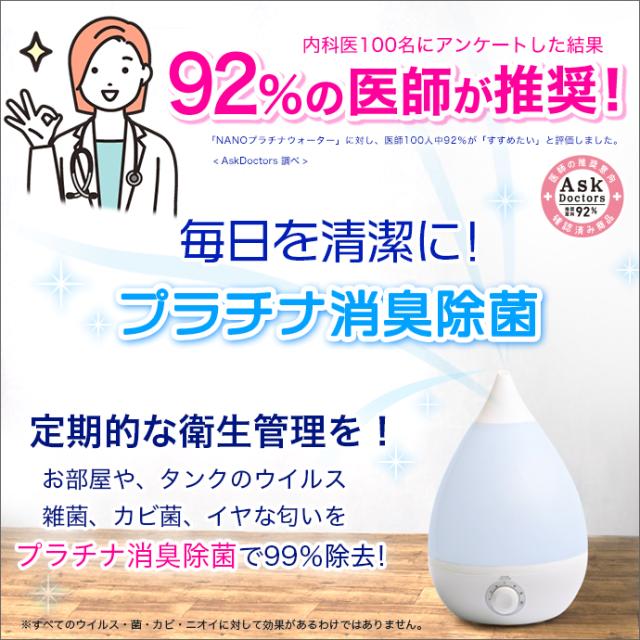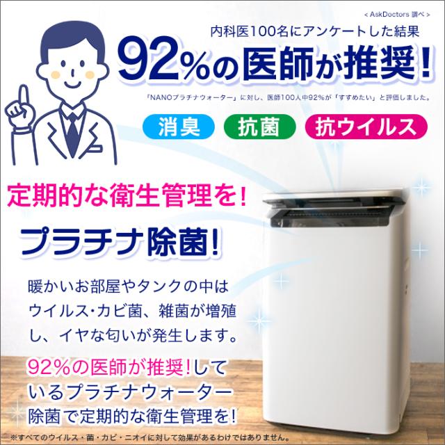 加湿器・空気清浄機のタンクなどの菌・臭いを除去し、優しく刺激性が無く、長時間除菌を可能にしたNANOプラチナは除菌・消臭対策などに適して活用されてます。