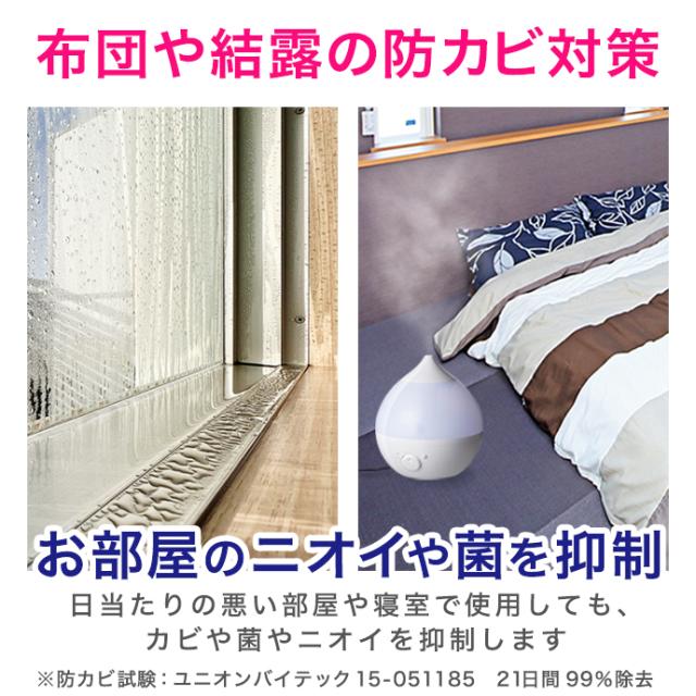 3・空気清浄器・加湿器のミストにより、お部屋全体に広がり布団・枕・カーテン・壁紙・タンス・花瓶、衣料品、テーブルやイス等の除菌・消臭・防カビを可能に!