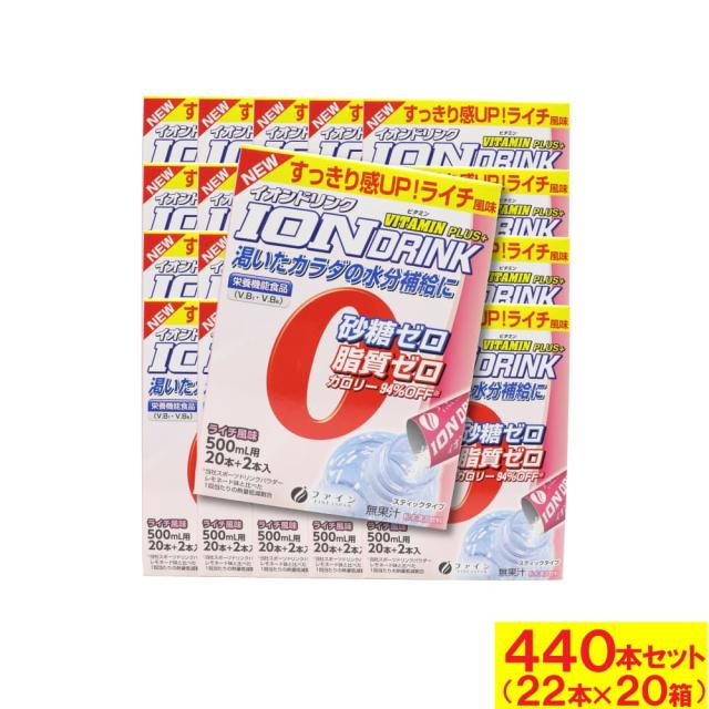 ファイン イオンドリンクビタミンプラス ライチ風味 500ml用 3.2g ×22本 ×20箱セット 計440本 クエン酸 スティックタイプ