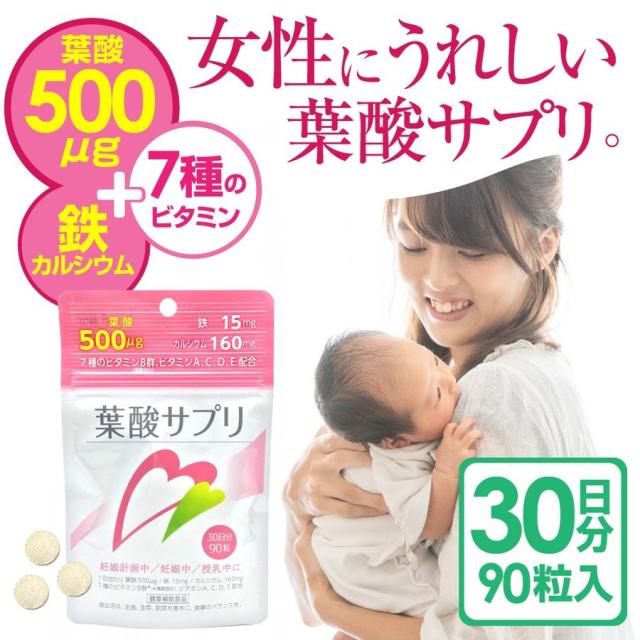 サプリメント 葉酸 鉄 カルシウム 90粒 30日分 7種 ビタミンB群 ビタミンA ビタミンC ビタミンD ビタミンE 配合