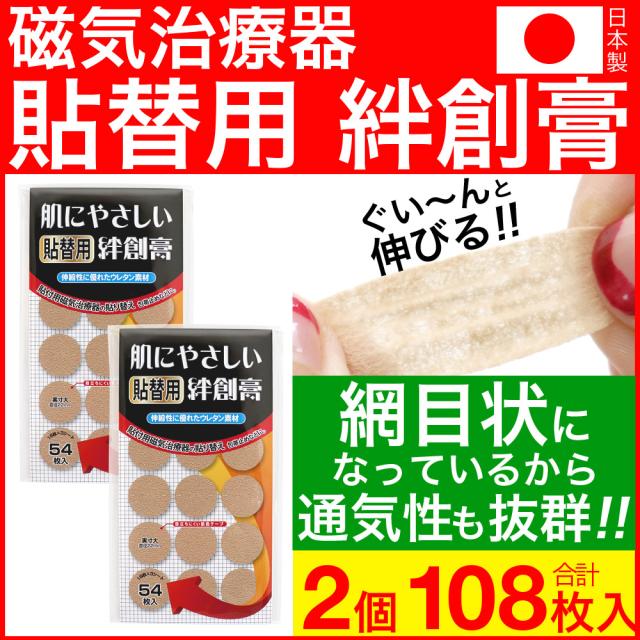 磁気治療器 貼り替え シール ウレタン 円形 絆創膏 54枚入 2個セット 日本製 送料無料