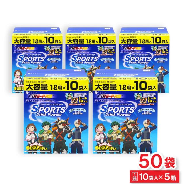 スポーツドリンク 粉末 パウダー 熱中症 対策 大容量 1L用(40g) 10袋入 ×5箱セット 僕のヒーローアカデミア
