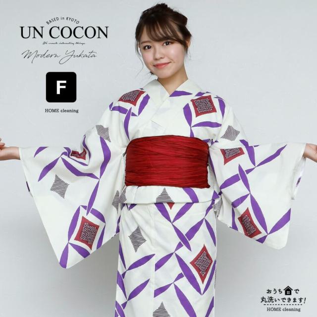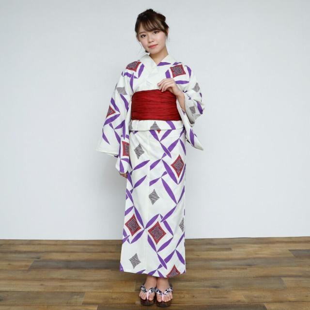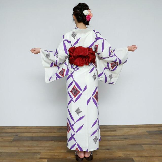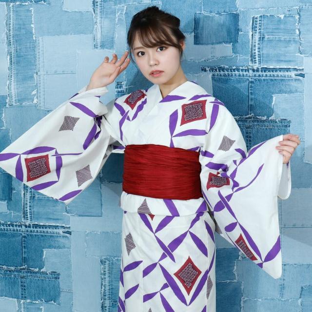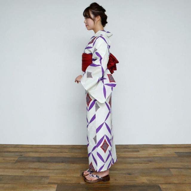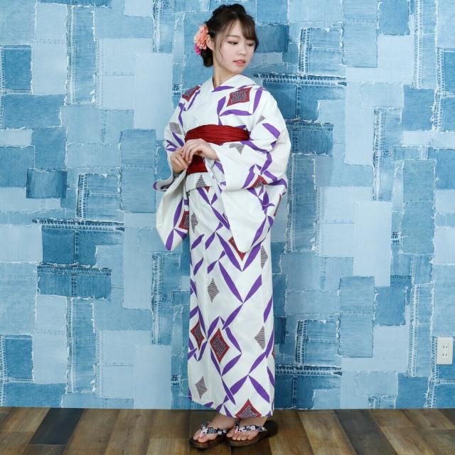 送料無料 夏新作 女性浴衣 レディース浴衣 浴衣 単品 レトロ 浴衣単品 仕立て上がり レディース 女性用 フリー 白 ホワイト パープル 紫 菱型 ダイヤモンド