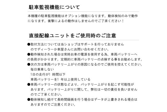 ●車両バッテリーの状態などの起因により、バッテリー上がりを起こす可能性があります。バッテリー上がりに関して、弊社は一切の責任を負いませんのでご了承ください。