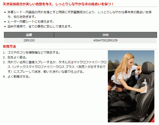 SONAX ソナックス エクストリーム レザー ケア フォーム 品番:289100 本革シートクリーナー 250ml