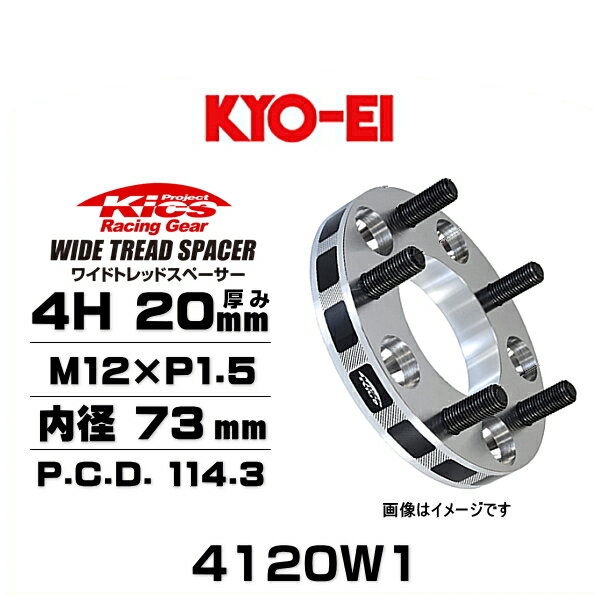 KYO-EI 協永産業 4120W1 ワイドトレッドスペーサー ハブリング無し 4穴 厚み20mm P.C.D.114.3 内径 73mm 外径 145mm ネジサイズ M12×P1.5 2枚セット