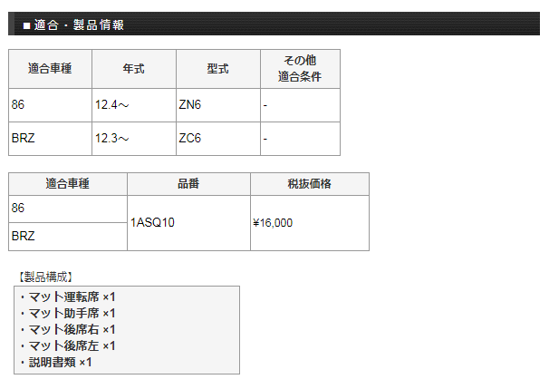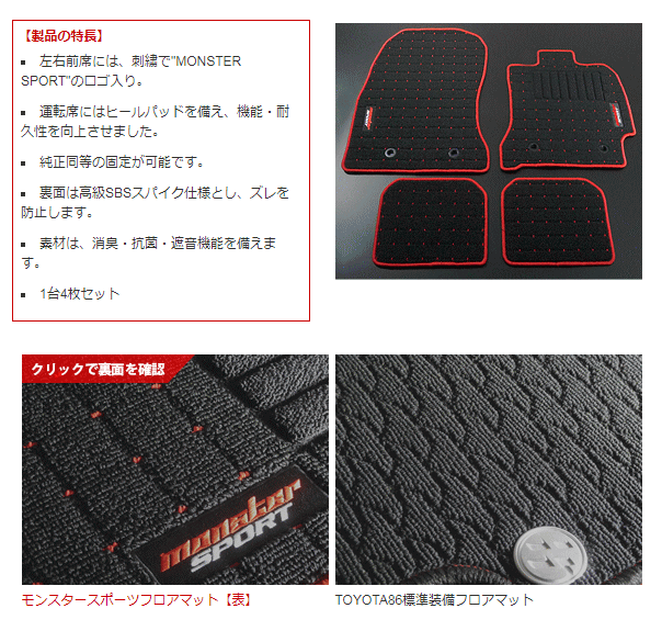 Monster SPORT モンスタースポーツ 1ASQ10 フロアマット トヨタ86/スバルBRZ用