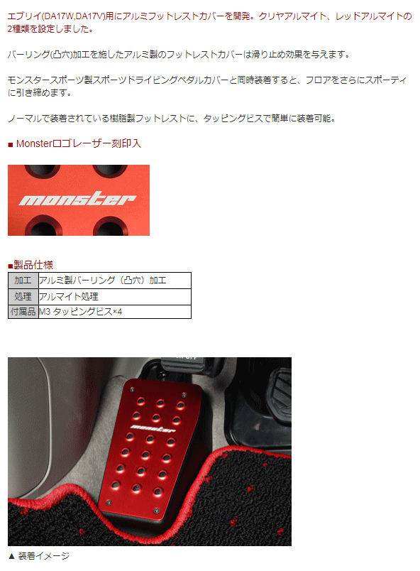 Monster SPORT モンスタースポーツ 841502-3900M クリヤアルマイト アルミフットレストカバー エブリイ(DA17W,DA17V)用