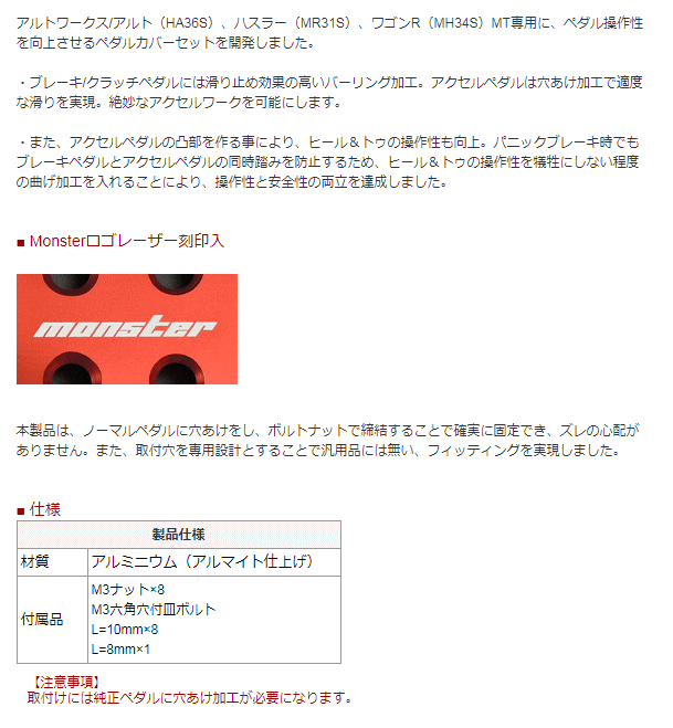 Monster SPORT モンスタースポーツ 849500-7200M クリヤアルマイト スポーツドライビングペダルカバー アルトワークス[HA36S]、ハスラー他 MT車用