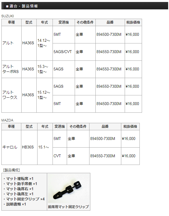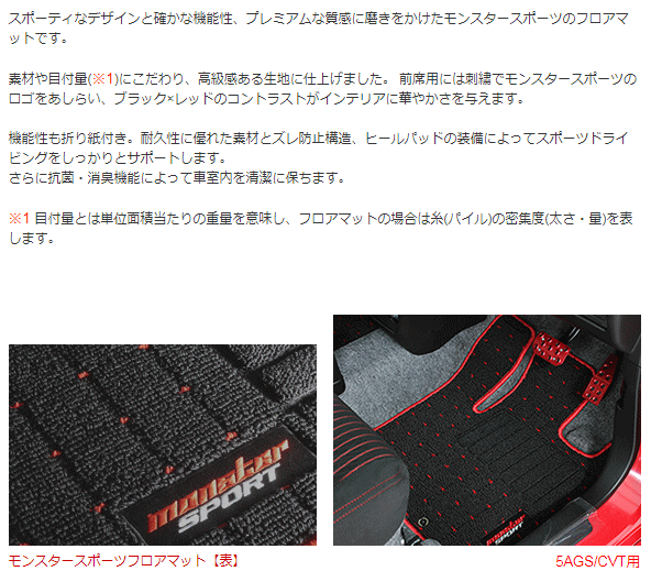 Monster SPORT モンスタースポーツ 894500-7300M フロアマット 5MT アルトワークス/アルトターボRS/アルト[HA36S] / キャロル[HB36S]用