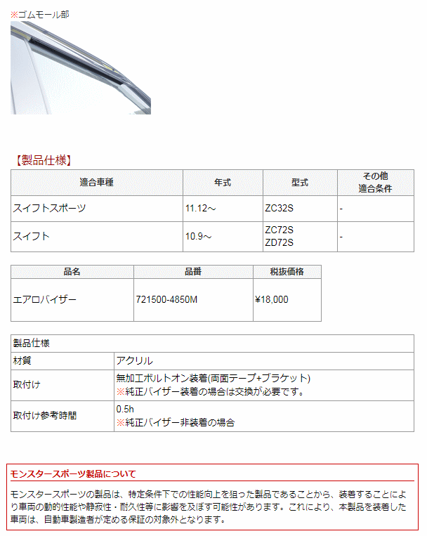 Monster SPORT モンスタースポーツ 721500-4850M ウィンドウエアロバイザー スイフトスポーツ(ZC32S)/スイフト(ZC/ZD72S)