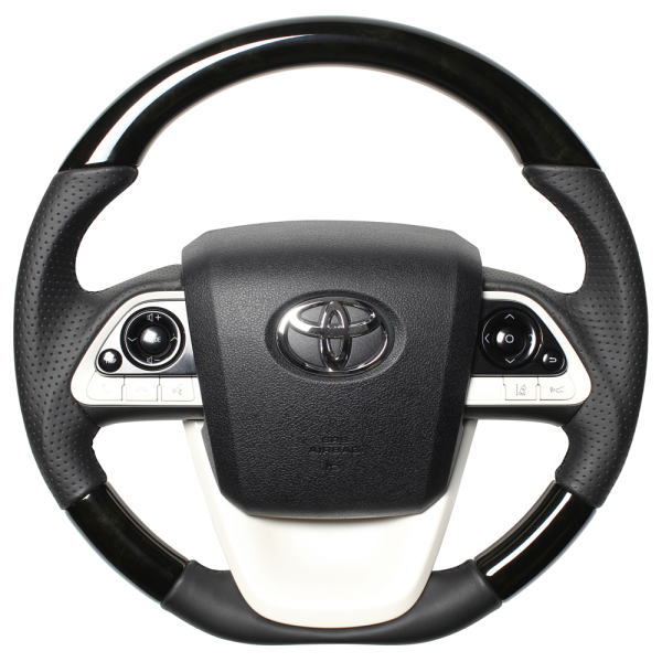 REAL レアル 50P-BKW-BK ステアリング Dシェイプ ブラックウッド ブラックユーロステッチ プリウス (50系)、プリウスPHV (50系) 、MIRAI (10系)