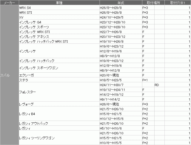 | ■対応メーカー スバル車用 適合車種は下記取付適合車種一覧をご覧ください。最新情報は必ずにてご確認ください。 |