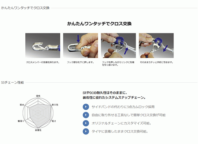 SCC Japan SS765 トラック・バス用SSケーブルチェーン(タイヤチェーン) システムスナップ 1ペア(左右)