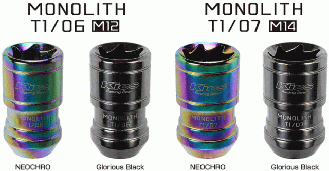 KYO-EI 協永産業 MN03GK-4P Kics MONOLITH モノリス T1/06 M12×P1.25 4個入 貫通ナット カラー:Glorious Black