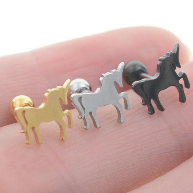 [18G ボディピアス ストレートバーベル] ユニコーン ボディーピアス 18ゲージ メンズ レディース ゴールド シルバー ブラック 金色 銀色 黒色 男 女 彼氏 彼女 面白い おもしろい 人気 おしゃれ プレゼント ステンレス 可愛い 一角獣 ペガサス 馬 ウマ アニマル 動物 干支