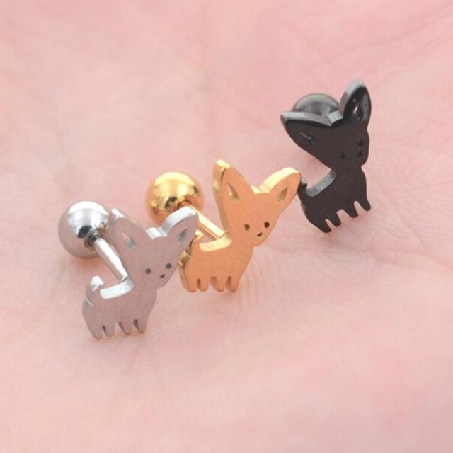 干支ピアスにも使える戌のボディピアス。イヌのカラーも銀色シルバー、金色ゴールド、黒色ブラックから選べるので男性でも女性でも使えるボディーピアスです。シャフトが真っ直ぐのストレートバーベルタイプなので、軟骨のヘリックスやトラガス、インナーコンクやアウターコンク、耳たぶにも普通に使えるボディーピアスです。メンズでもレディースでも使えるのでペアルックやプレゼントにも最適です。洋服に合わせてコーデできる人気のボディピアス。誕生日ギフトや記念日のサプライズプレゼントにも!