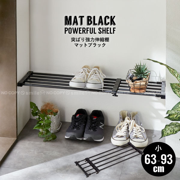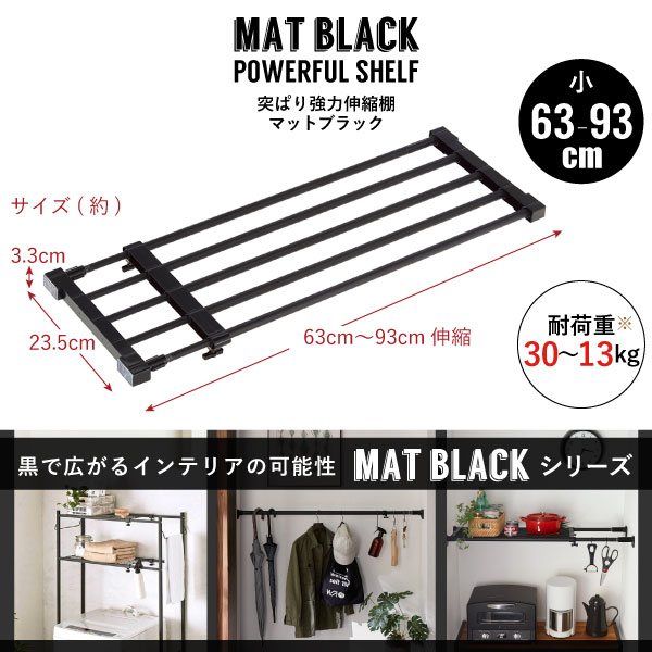つっぱり棚 強力 [耐荷重]30kg-13kg 63-93cm 伸縮 おしゃれ 艶消し 黒 モノトーン インテリア 収納 突っ張り ラック 201910-01