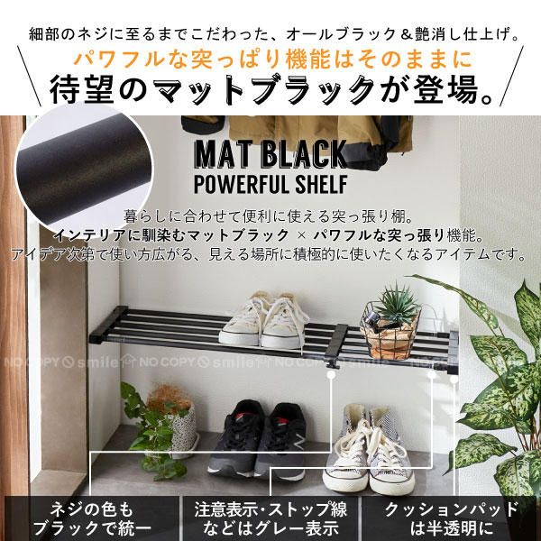 ネジやくぎを使わずに簡単に取り付けできる突ぱり強力伸縮棚に、インテリア性の高いマットブラックが登場しました。