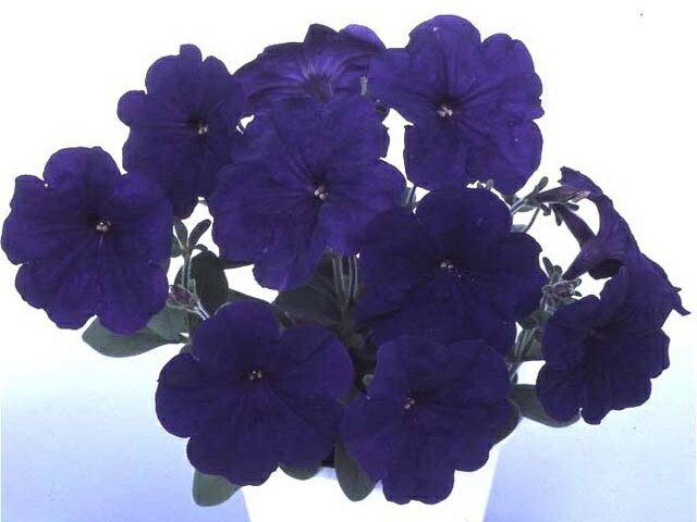 | 花径5〜6cmの中輪一重咲きタイプのペチュニア。 抜群に花つきがよく、優れた分枝性で、春から秋まで長期間楽しませてくれる花苗です。 雨にも、夏の暑さにも強いので、花壇を彩るのにもぴったり! 花色はとても深い青褐(あおかち・青みの強い褐(かち)色)で、シックで落ち着いた雰囲気があります。 花がたくさん咲いた姿は、上品でいてエレガントな大人の女性のようです。 ぜひ主役として使いたい花苗ですね。 花姿にくせがないので、和風や洋風、自然風のアレンジなど、どんな花ともよく合います。 |