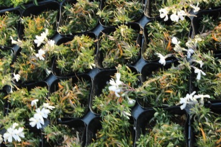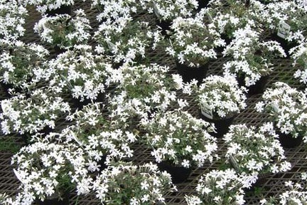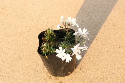 | 春になると地面を這うように覆って、桜に似た小さな花を咲かす芝桜。 真っ白なかわいい花が咲きます。 一面に咲いた様子は花のカーペットのようで大変美しく、グランドカバーとして人気があります。 環境がよければ一株で50cmほど広がります。 もちろん、花壇の縁取りや鉢植えなど幅広く使うことができます。 |
