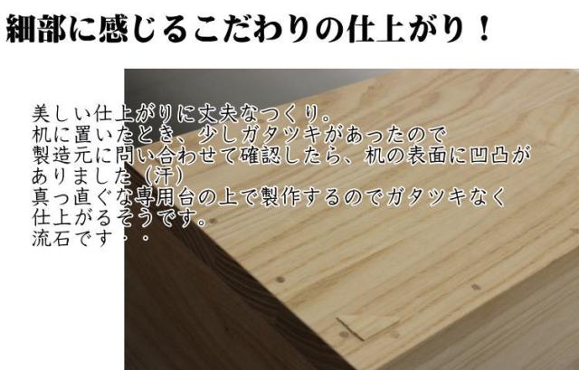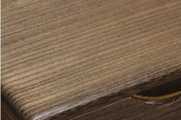 | 炭を落としていくと、木目が浮き上がってきます。 そしてロウを細かく塗っていくと、色落ちしない光沢のある美しい色合いに仕上がります。 この工程でも、もちろん薬品等を使用しておりません。 |