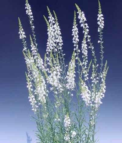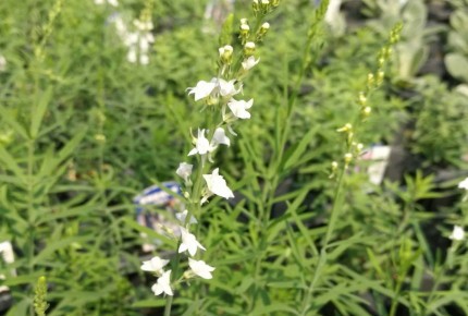 | 純白の優しい穂状の花が魅力的な宿根草です。 一年草のヒメキンギョソウと比べ、草丈が約70センチと高性ですので、花壇の後ろや切り花としても利用出来ます。 また庭の後方に植えこむのもいいでしょう。 通常ではあまり倒れることはないのですが、風がよく通るところなどでは支柱をしてあげると安心です。 耐寒性は強いですが耐暑性はあまり強くありません。 しかし、もし夏に枯れてしまっても、こぼれ種からよく発芽するので、毎年楽しむことができます。 |