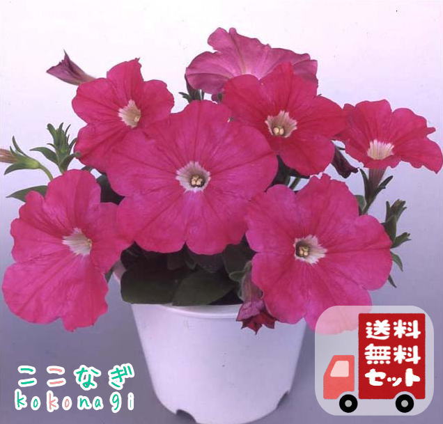 | 花径5〜6cmの中輪一重咲きタイプのペチュニア。 抜群に花つきがよく、優れた分枝性で、春から秋まで長期間楽しませてくれる花苗です。 雨にも、夏の暑さにも強いので、花壇を彩るのにもぴったり! 花色は鮮やかなピンク色で、あたりが華やかな雰囲気になります。 花がたくさん咲いた姿は、若々しい中にも凛と筋が通った女性のようです。 花色・花姿にくせがないので、和風や洋風、自然風のアレンジなど、どんな花ともよく合います。 主役としても、引き立て役としても使える花苗です。 |
