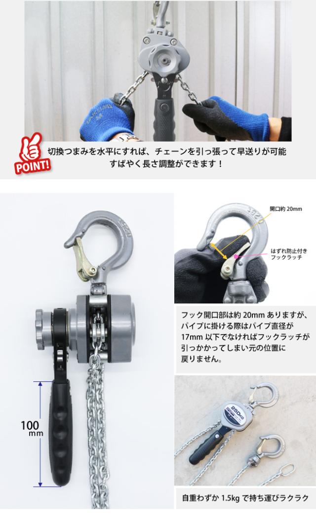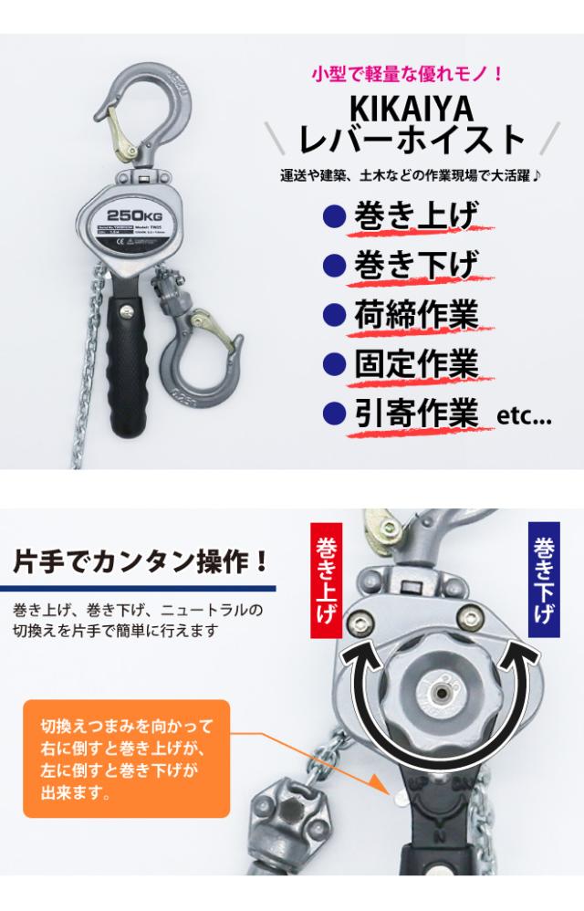 ミニレバーホイスト 250kg 超軽量 コンパクト チェーンブロック ガッチャ 荷締機 KIKAIYA