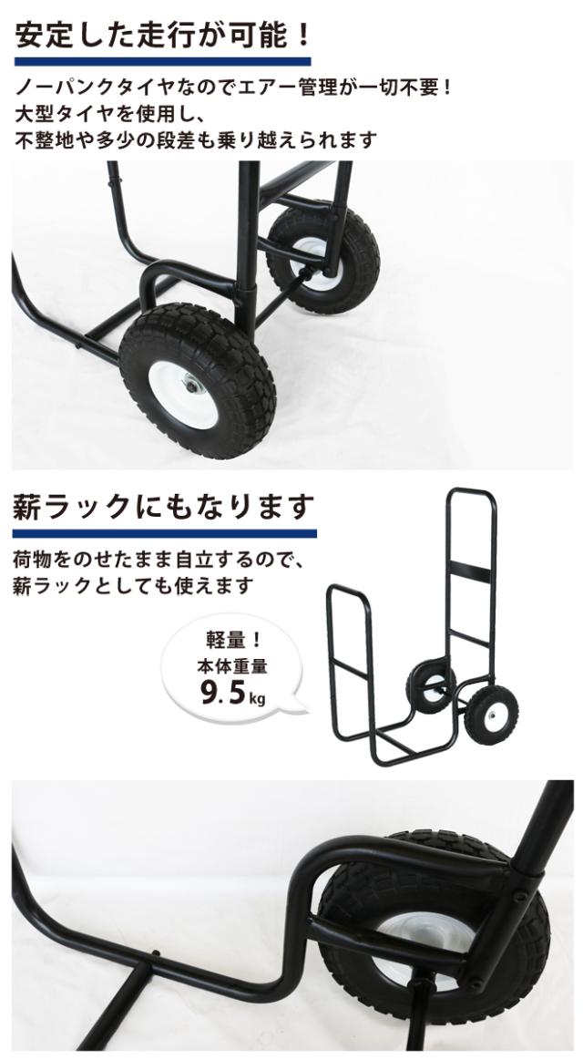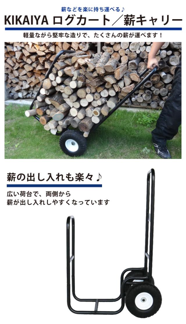 ログカート 薪運搬車 ノーパンクタイヤ 薪ラック 薪キャリー 薪カート 大型タイヤ 軽量 KIKAIYA