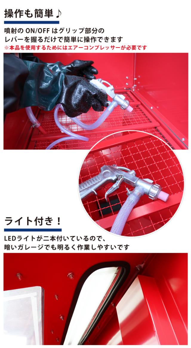サンドブラスト 220L スタンド付 LEDライト付き 大型 サンドブラストキャビネット サンドブラスター KIKAIYA
